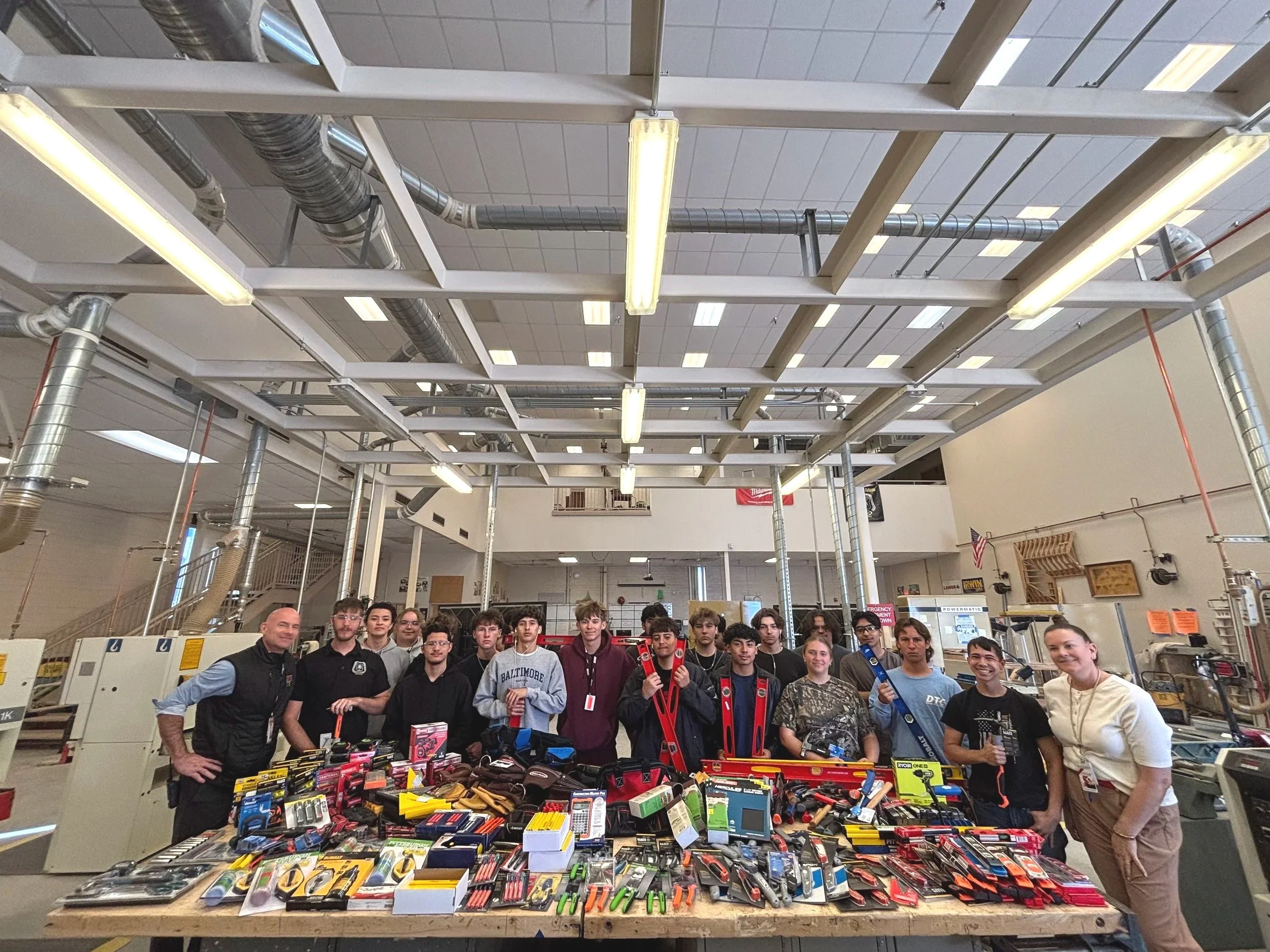 Students and staff gathered around nearly 1,000 tools donated from Nigro’s Tools for Trades drive.